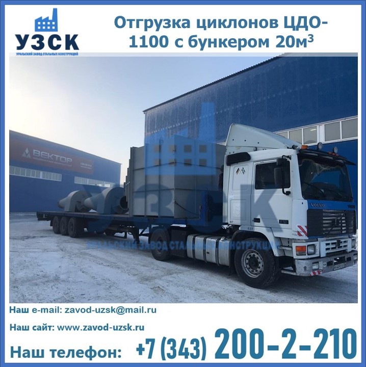 Циклоны ЦДО-1100 с бункером на 20 кубов были отгружены в декабре 2018 года в г. Новосибирск Мытищи.