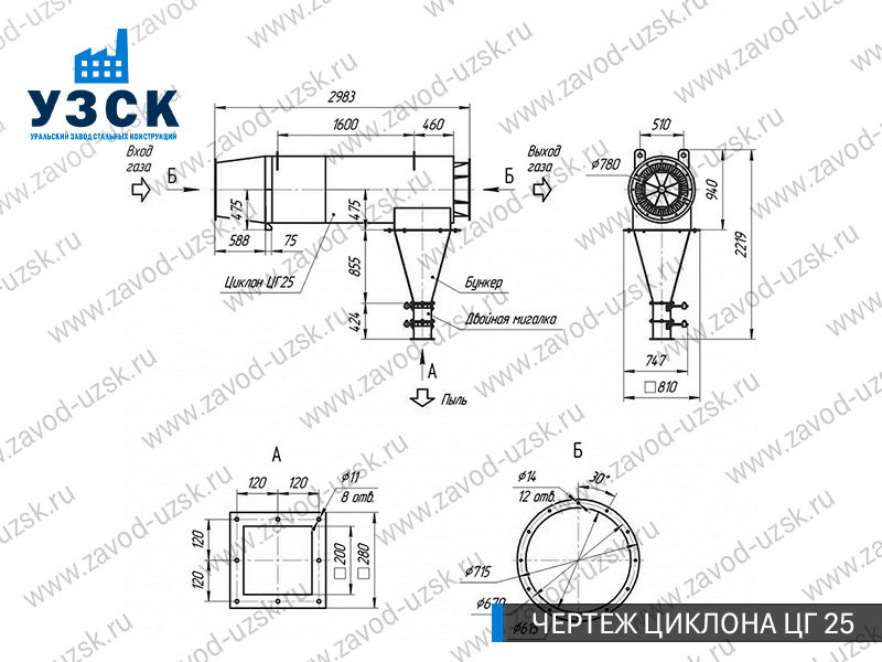 Монтаж циклона-искрогасителя ЦГ должен осуществляться непосредственно к горизонтальному вентиляционному каналу на входе в систему фильтрации и аспирации. Заказать изготовление по индивидуальному техзаданию или купить готовый циклон-искрогаситель ЦГ на заводе УЗСК в Мытищах можно, оставив заявку прямо на сайте или позвонив по указанному телефону, уточнив все детали касательно продажи оборудования.