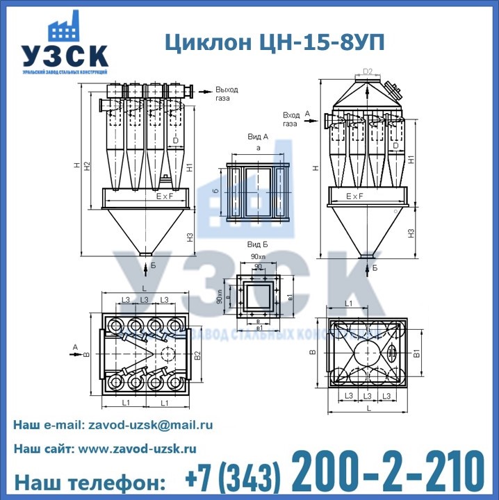 Завод «УЗСК» в Мытищах предлагает большой выбор циклонов ЦН-15-500×8УП и прочих устройств, полностью укомплектованных и готовых к эксплуатации. Мы гарантируем соответствие оборудования всем требованиям ГОСТ и ТУ, износостойкость и высокую производительность предлагаемого оборудования. Уральский Завод Стальных Конструкций изготавливает и продает надежное, эффективное и производительное оборудование, имеющее длительную гарантию и большой эксплуатационный ресурс. Если требуется изготовить циклон нестандартных размеров, то такой вариант выполнения заказа тоже предусмотрен, так как предприятие имеет собственные производственные площади и надежных поставщиков. На все поставляемое или производимое оборудование имеются чертежи и прочая техническая документация. Заказать и купить циклоны или прочее оборудование высокого качества и по доступной цене можно через наш сайт или по указанному в разделе «Контакты» телефону.