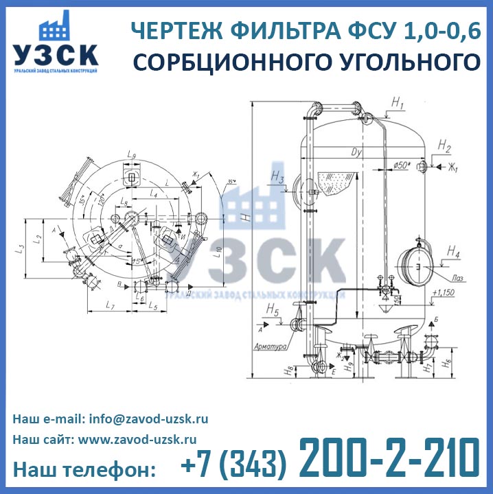 Наш завод (Уральский завод стальных конструкций) является производителем угольных фильтров, сам осуществляет изготовление и реализацию выпускаемой продукции. Приобретая фильтры ФСУ-1.0-0.6 в Мытищах от производителя, Вы приобретаете оборудование без наценок всевозможных посредников, а также значительно экономите свое время. Фильтры ФСУ1.0-0.6 завода УЗСК – это гарантия качества, кратчайшие сроки изготовления и цена, которая Вам понравится.