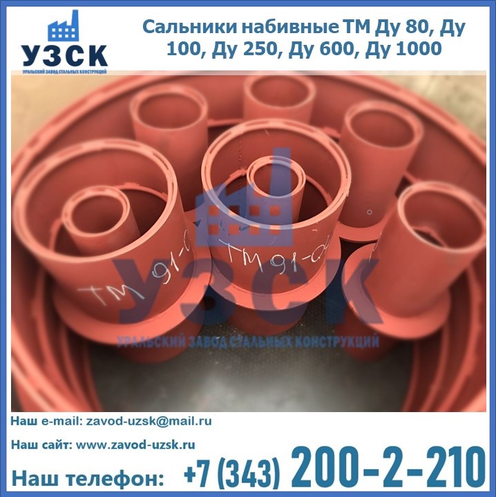 На производственных площадях Уральского Завода Стальных Конструкций в Мытищах профессиональные сотрудники занимаются проектированием и разработкой различных закладных деталей, в частности осуществляется производство и реализация набивных и нажимных сальников. Все изделия, которые можно приобрести у нас, отвечают установленным требованиям по ГОСТу, а также прочей нормативной документации.